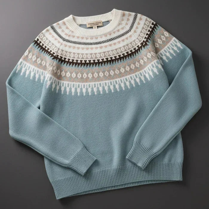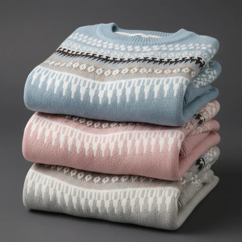 Sein einzigartiges geometrisches Muster — sorgfältig in sanften und harmonischen Farbtönen gestrickt — verleiht ihm eine authentische und moderne Note, die sowohl zu lässigen Outfits als auch zu eleganteren Looks passt.